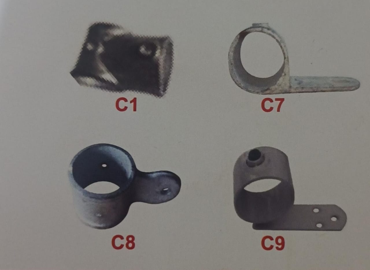 Structure Clamps C1, C7, C8, and C9 are high-strength metal connectors engineered for assembling safe, stable, and long-lasting soft play, trampoline, and play structure frameworks. These clamps are specially designed to securely join GI pipes at various angles and base positions, ensuring excellent structural integrity for both indoor and outdoor installations.